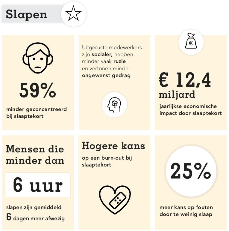 Uitgeruste medewerkers presteren beter. Dat spreekt voor zich. Maar hoe weet je of jouw medewerkers uitgerust zijn? En mag je je daar als werkgever mee bemoeien? Of is dat te privé? En als het invloed heeft op het werk. Mag het dan wel? Het is duidelijk een lastig en gevoelig onderwerp. Op deze pagina lees je alles over slapen en uitgeruste medewerkers en wat je als werkgever kunt doen om je medewerkers uitgerust aan het werk te krijgen.